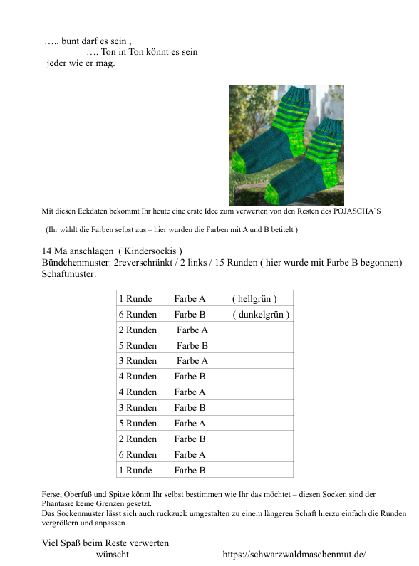 Ganz unter dem Motto der Nachhaltigkeit freu ich mich an diesem Projekt zu arbeiten. Hier schon mal ein paar Bilder der fertigen Sockis den Rest füge ich nach und nach zum Beitrag hinzu.