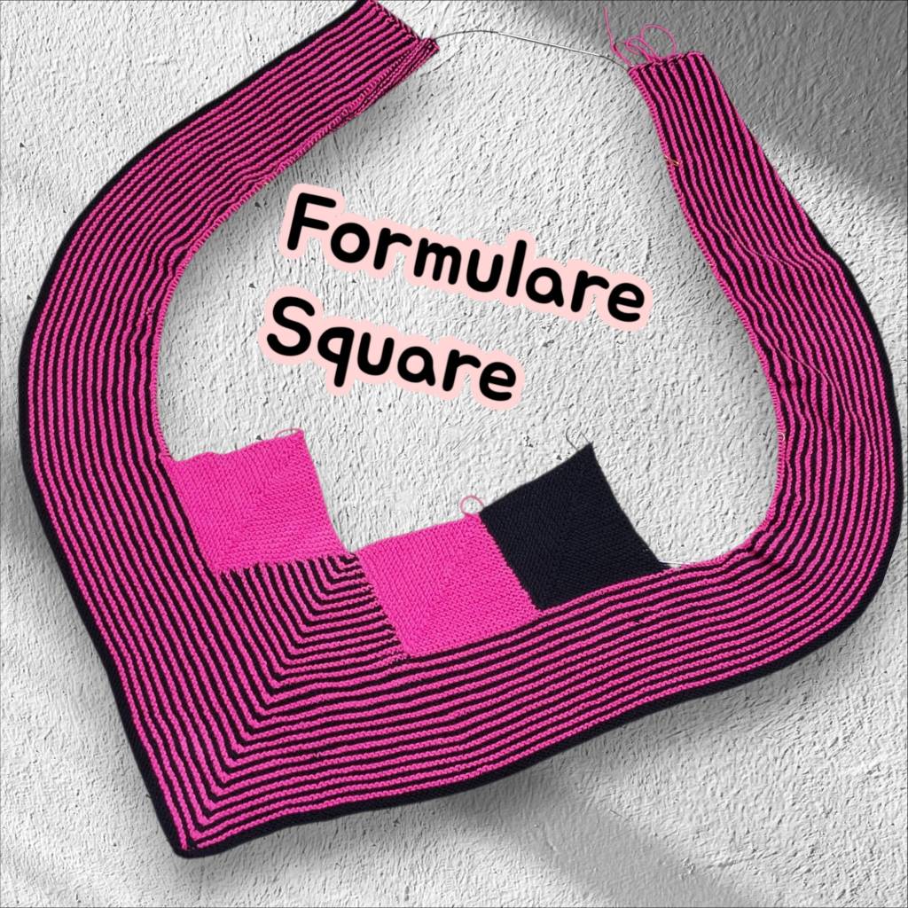 Formulare Square – Designerin ist Kirsten Schneider auch bekannt als Mrs. Postcard – mit dem Formulare Square hat sie sich wieder was ganz tolles einfallen lassen und ich freu mich die Nadeln tanzen zu lassen. Ich arbeite mit der Linie 18 Cotone Stretch Uni schwarz und pink und bin begeistert wie die Wolle nur so über die Nadeln gleitet.