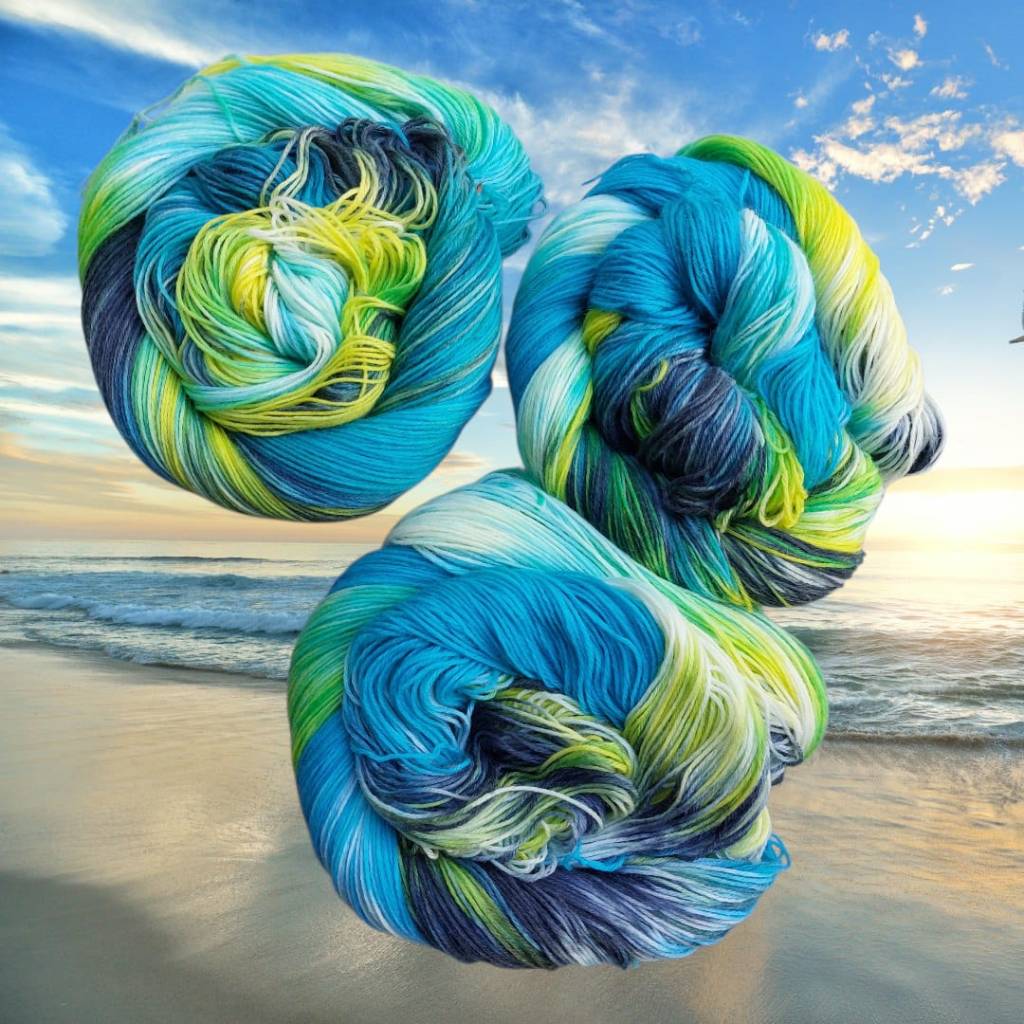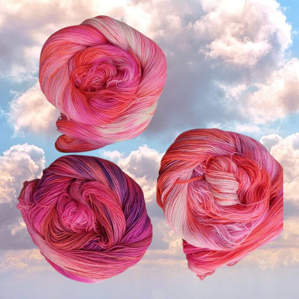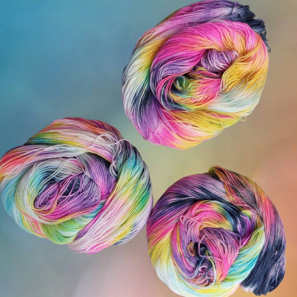 Also früher war ja Wolle einfach Wolle. Grau, schwarz, beige, creme, vielleicht mal ein zartes Pastell, wenn es hochkommt. Aber heute ? Heute gibt es gefärbte wilde Rebellen! Stränge so bunt, da wird selbst der Papagei neidisch. Und woher kommen die ? Na aus meiner Hexenfärbeküche natürlich — nie ohne Idee und immer volle Kanne! Ich sag es mal so: Ich hab mehr Farbtöpfe als Tupperdosen. Und das will was heißen. Da wird gerührt, gedreht, gekocht und geflucht, bis aus einem schnöden Wollstrang ein Kunstwerk entsteht. Hipp, stylisch und garantiert nix für Langweiler. Meine Socken sind keine Fußbekleidung das sind Statements! Und jedes Paar erzählt eine Geschichte: Von Sonnenuntergängen oder von Meeresrauschen, Walpurgisnacht, Sansibar oder oder oder. Meine Liebe zu Farben und Wolle kennt keine Grenzen. Ich färbe, stricke und verschenke – denn bunte Socken machen Freude bei Groß und Klein. Und wer behauptet, das Socken als Geschenk langweilig sind, hat noch nie meine “ Schrill & Schön “ – Kollektion gesehen. Also, aufgepasst: Wenn es im Haus nach Essig und Magie duftet und der Kocher pausenlos röchelt – dann hat die Hexenfärbeküche wieder geöffnet. Eintritt frei. Nur Mut — Farbe steht jedem !!!!