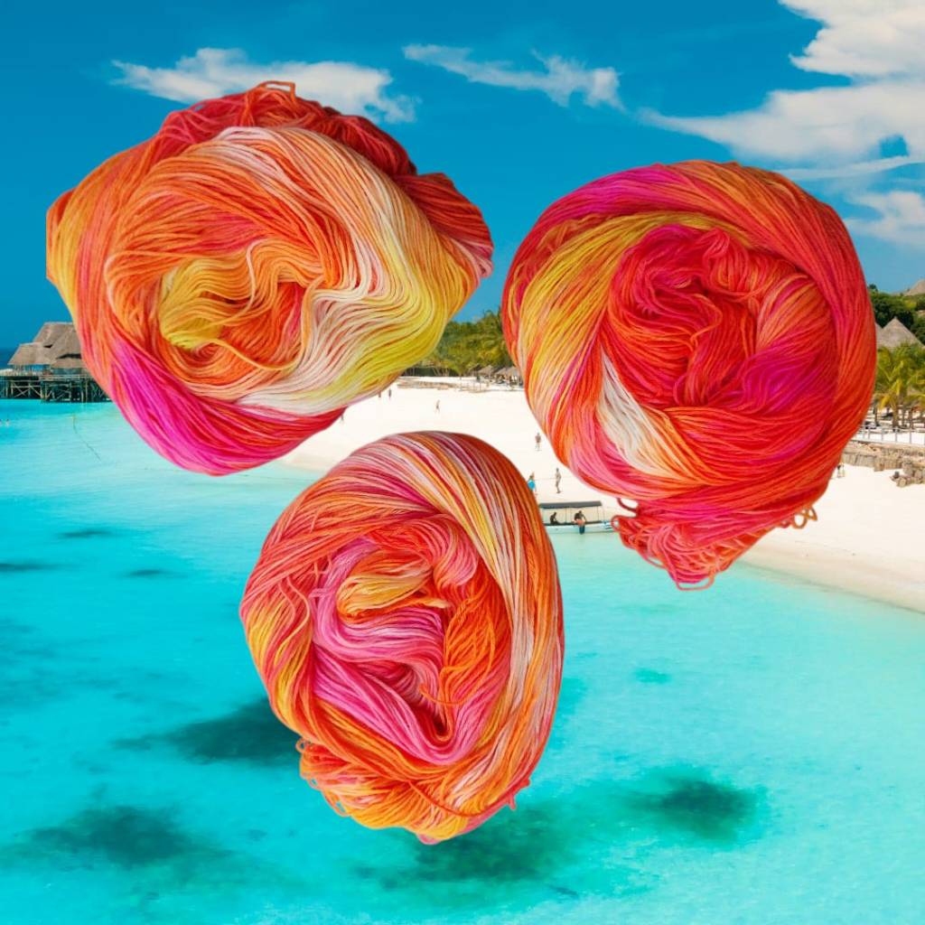 Heute war Färbetag – und wie immer ging es in der Färbeküche nicht nur bunt, sondern auch ziemlich lustig zu. Zwischen dampfenden Töpfen und sprudelnden Ideen fühlte es sich fast ein bisschen wie Urlaub an: ein Hauch von Sansibar, mit Meer, Strand und Cocktail-Farben, die schon beim Anblick gute Laune machen.