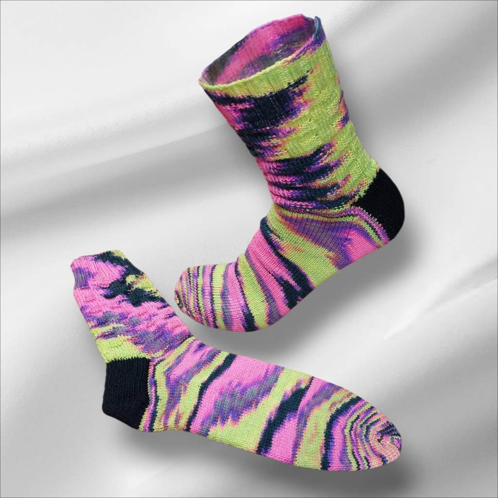 diese beiden Runden wiederholen bis die gewünschte Schafthöhe erreicht ist. Peng fertig – strickt sich ruckzuck und fast von ganz allein.