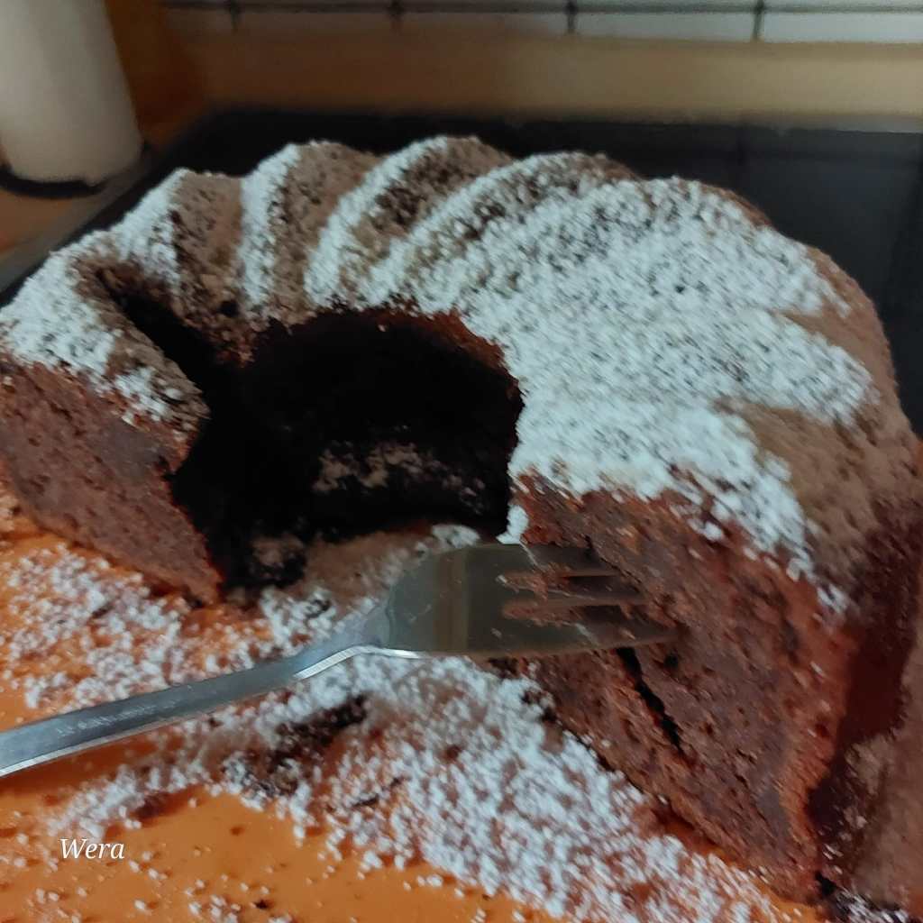 Ofen vorgeheizt 180° mittlere Schiene 45 Minuten bis 50 Minuten backen – je nach Backofen. Auskühlen lassen , Puderzucker oben drauf und schmecken lassen.